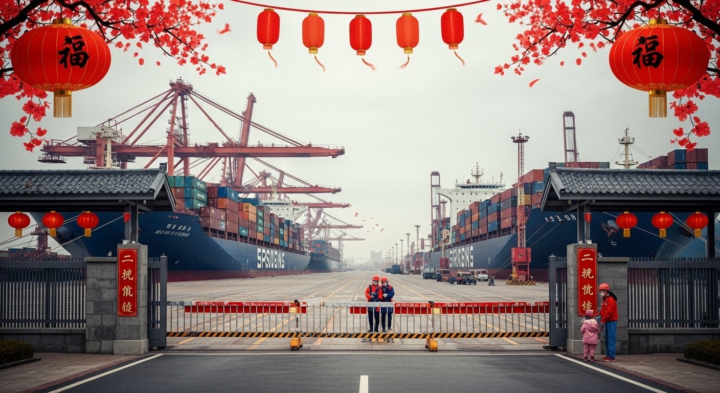 This year’s Lunar New Year ran from February 15 to 23—a full nine days, the longest on record. Authorities deliberately stretched the break to encourage consumer spending and travel. Millions headed home, factories powered down, and cargo shipments stalled as workers celebrated with family.