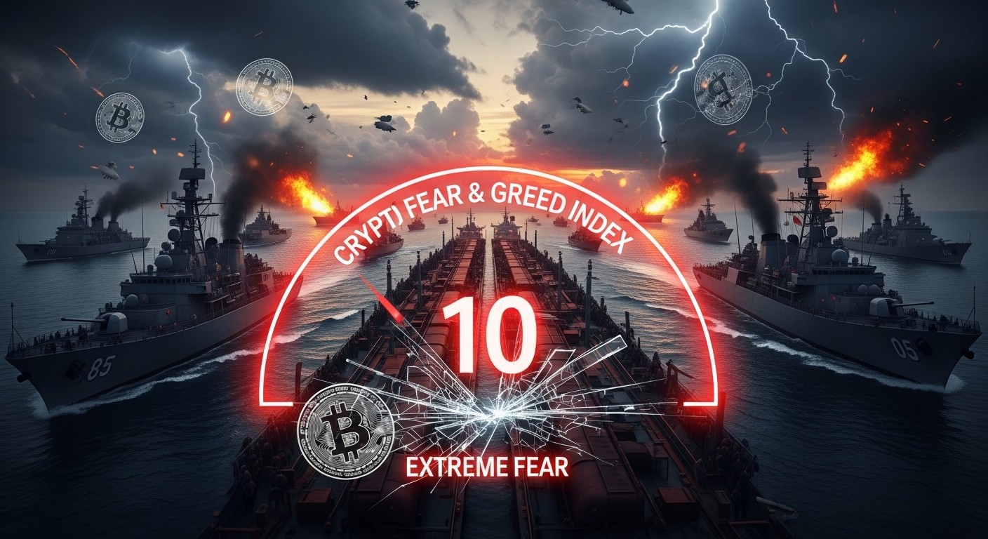 Have you ever watched the crypto charts and felt that knot in your stomach when everything suddenly turns red? That’s exactly the sensation rippling through the market right now. The fear and greed index, that little gauge so many of us check obsessively, has tumbled to a chilling 10. Extreme fear territory. And the trigger? Not some exchange hack or regulatory bombshell this time—it’s old-school geopolitics flaring up in the Middle East, specifically around the Strait of Hormuz.