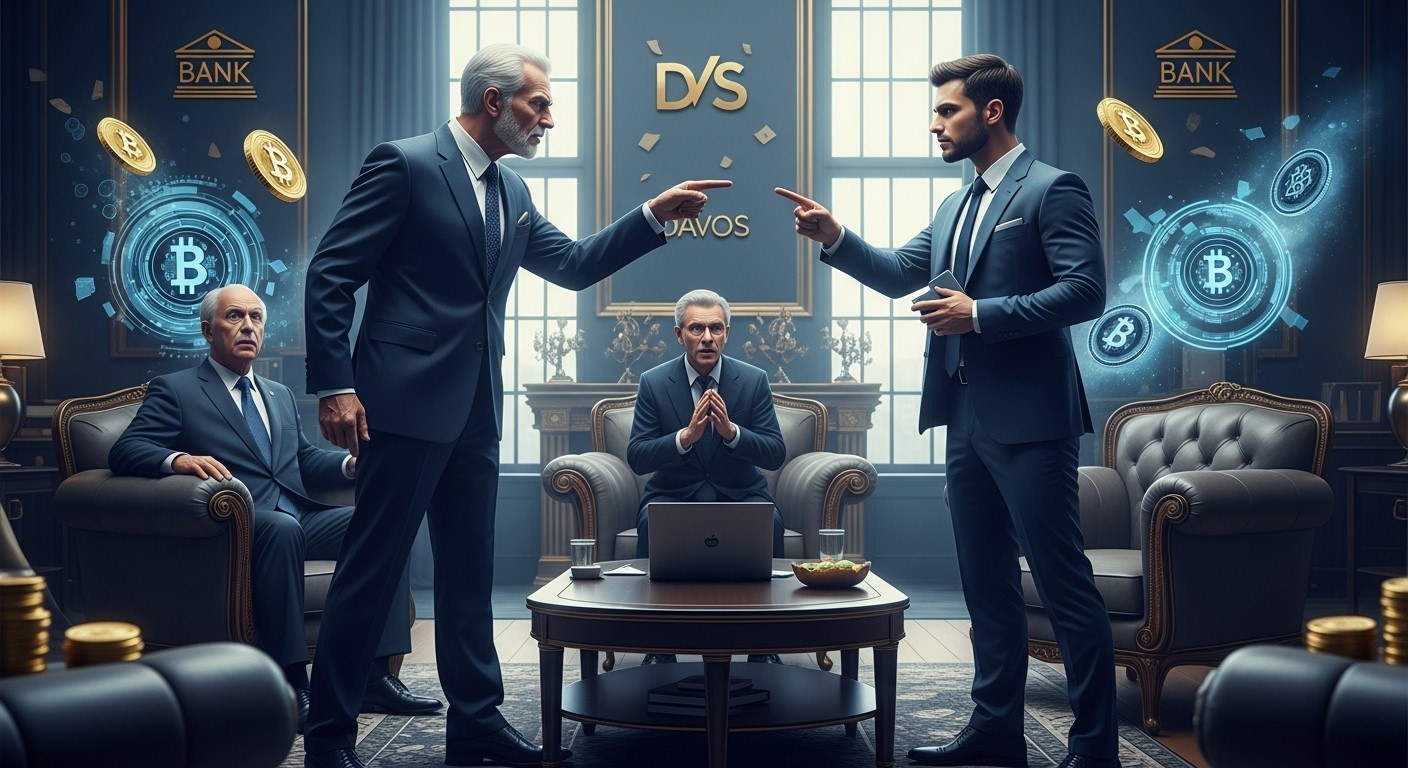 Imagine sipping coffee at one of the world’s most exclusive gatherings, chatting casually with a former world leader, when suddenly a titan of traditional banking storms over, points directly at you, and unleashes a blunt, unfiltered accusation. That exact scene unfolded recently at the World Economic Forum in Davos, and it has sent ripples far beyond the snowy Swiss mountains.