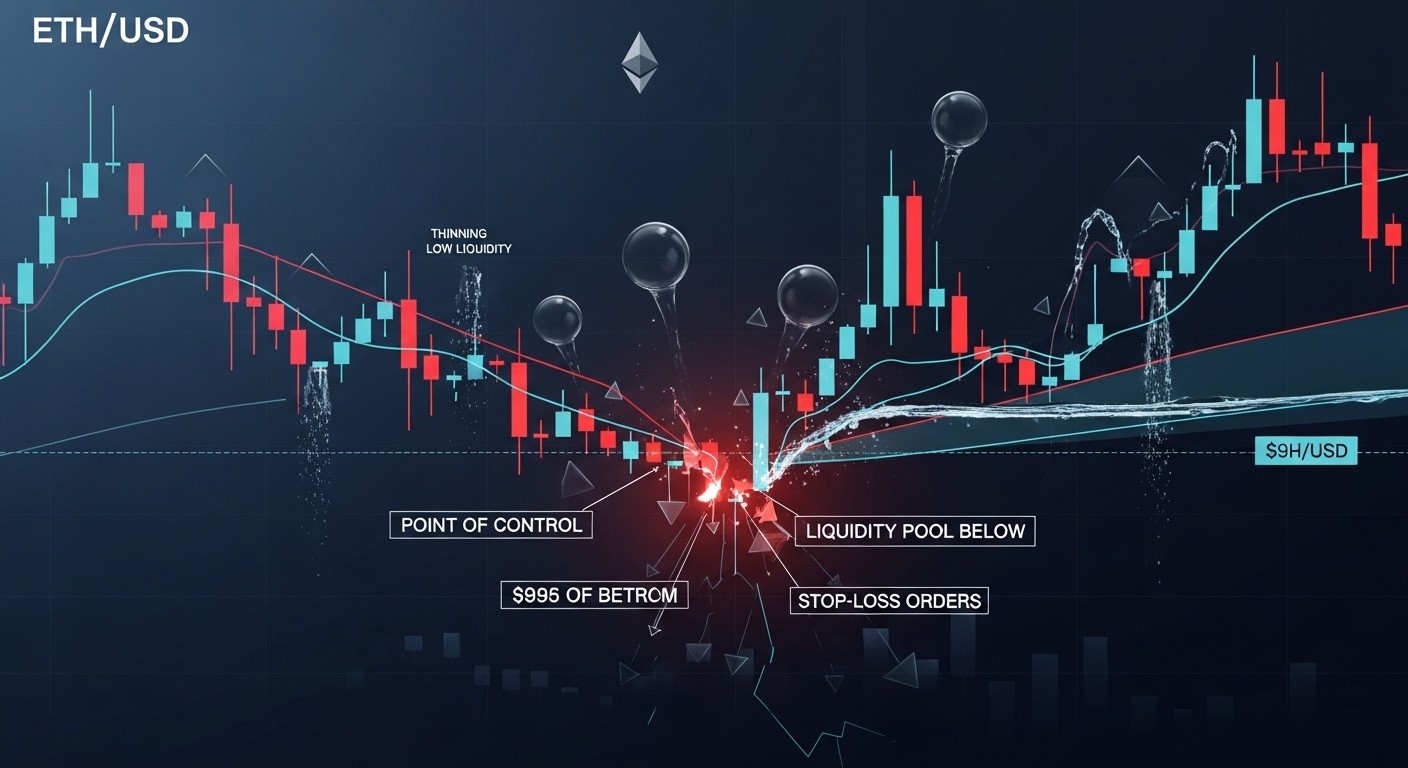 From a pure price-action viewpoint, the next logical downside target after a sub-$1,000 break sits near the $900 area. That zone lines up with deeper value areas from prior ranges and has acted as a strong reaction point in the past. Reaching it would almost certainly come with elevated volatility and emotional capitulation—classic ingredients for either a vicious flush or a climactic low.