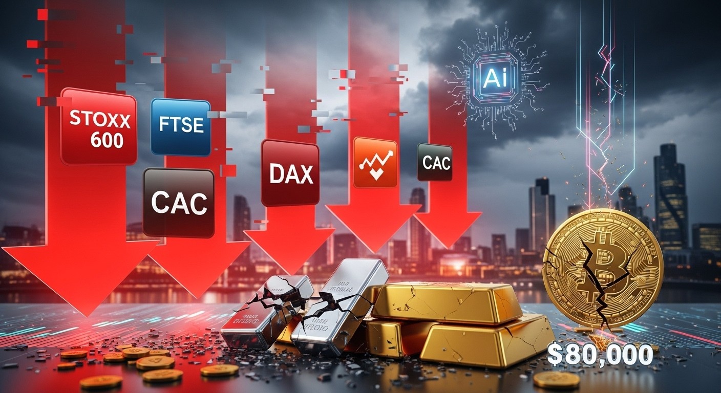 Have you ever woken up to check the markets and felt that sinking feeling when everything seems to be painted in deep red? That’s exactly the mood gripping investors right now as European trading floors prepare for what looks like a bruising start to the week. The combination of wild swings in commodities, renewed skepticism around artificial intelligence’s explosive growth, and a notable pullback in crypto has created a perfect storm of uncertainty.