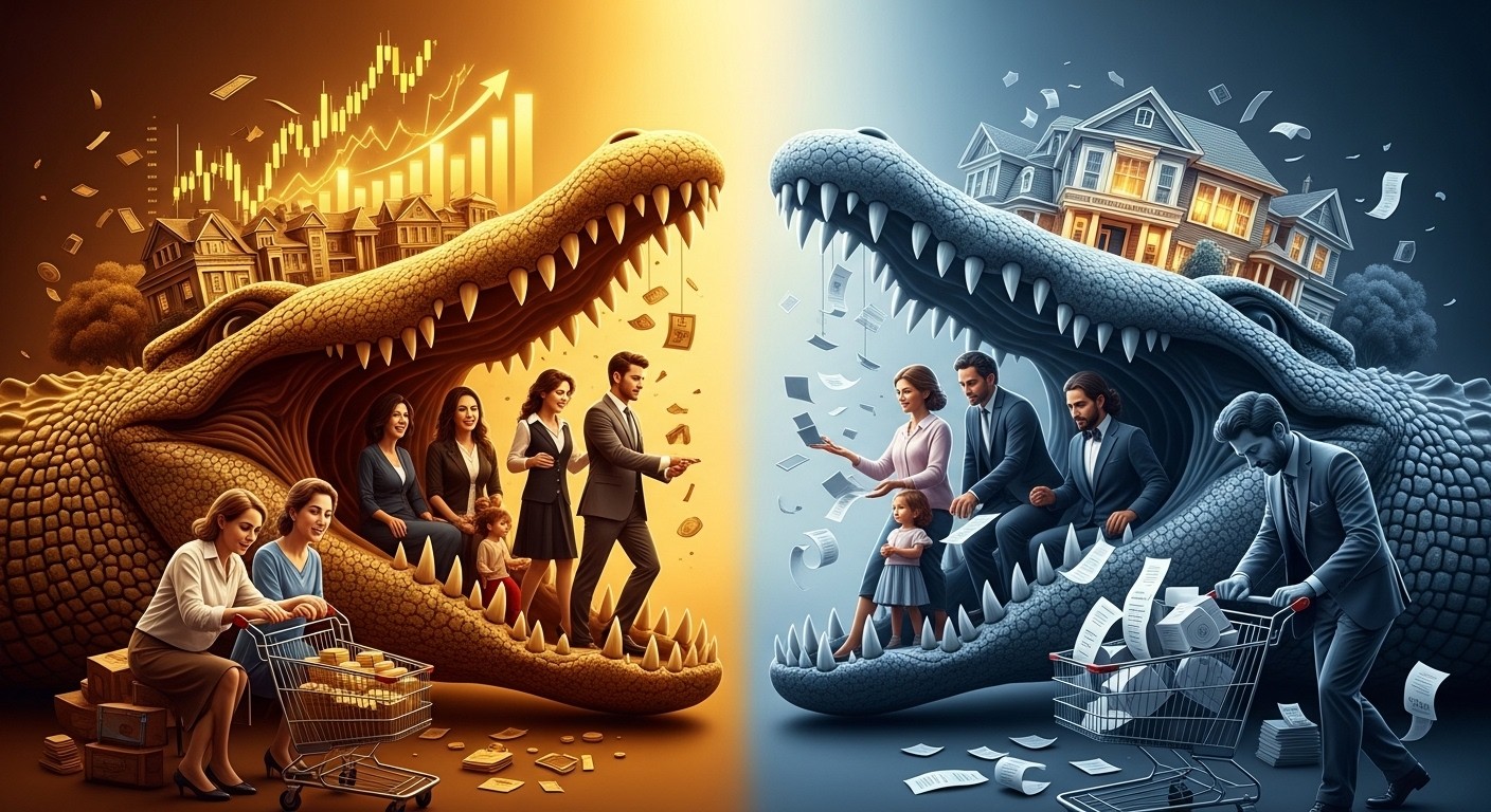 Have you ever felt like the economy is playing favorites? One day you’re reading about booming luxury sales and record stock highs, and the next you’re staring at your own budget wondering how to stretch the same paycheck further. Lately, that feeling isn’t just personal—it’s showing up in the data, big time. We’re watching something economists have dubbed the “K-shaped economy” stretch and twist into something even more concerning, almost like the jaws of a crocodile slowly opening wider.