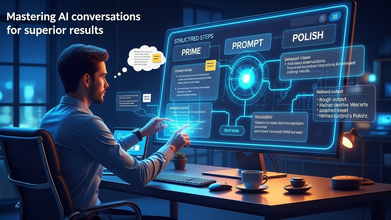 The truth is, most of us approach AI like it’s a magic eight ball—ask once, hope for the best. But after experimenting with different methods and listening to people who really know their stuff, I’ve realized there’s a much smarter way. It turns out there’s a straightforward three-step process that consistently delivers stronger, more useful results. It’s called Prime, Prompt, Polish, and honestly, it feels like unlocking a cheat code once you start using it regularly.