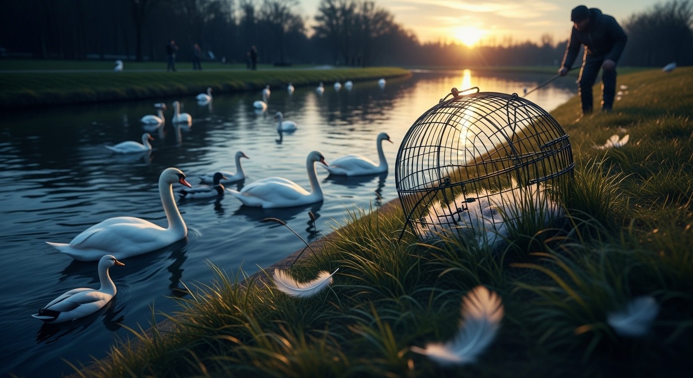 Have you ever strolled along a quiet canal or through a peaceful park, watching swans glide across the water like they own the place? There’s something almost magical about it—the way they move so gracefully, completely unaware of the human world rushing around them. But lately, stories and videos have surfaced that make those peaceful scenes feel a bit more fragile. People are sharing footage of what appear to be makeshift traps set up near waterways, and the targets seem to be those very same iconic birds. It leaves you wondering: what’s really happening to our wildlife in these public spaces?