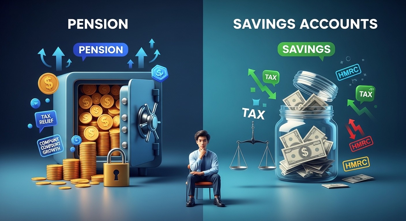 Smart savers use a hybrid approach. Keep cash for now, pensions for later. Salary sacrifice into pensions if available – it saves National Insurance too. Review annually, especially around tax year ends.