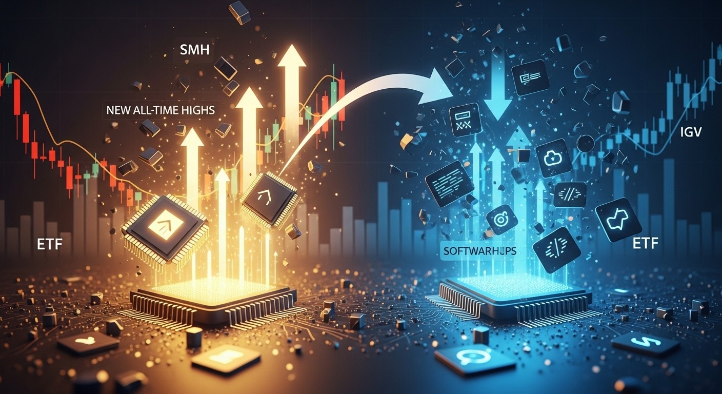 Have you ever watched two parts of the same big sector head in completely opposite directions and wondered what it really means? Right now, inside the massive technology universe, something intriguing is unfolding. Semiconductors—the chips powering everything from AI to smartphones—are charging to fresh all-time highs, while software stocks are quietly sliding to levels not seen in months. It feels less like random noise and more like a deliberate handoff of capital.